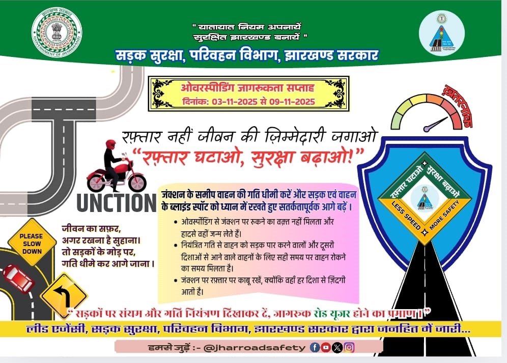 परिवहन विभाग ने चलाया “रफ्तार घटाओ सुरक्षा बढ़ाओ” अभियान