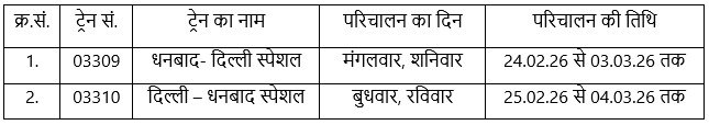 धनबाद: आने वाले त्योहारी सीजन को देखते हुए रेल यात्रियों की बढ़ती भीड़ के मद्देनज़र धनबाद और दिल्ली के बीच विशेष ट्रेन का परिचालन अतिरिक्त फेरों के साथ किया जाएगा। रेलवे ने यात्रियों की सुविधा और सुचारु आवागमन सुनिश्चित करने के लिए यह निर्णय लिया है। ट्रेन विवरण इस प्रकार है: रेलवे के अनुसार इन … Read more