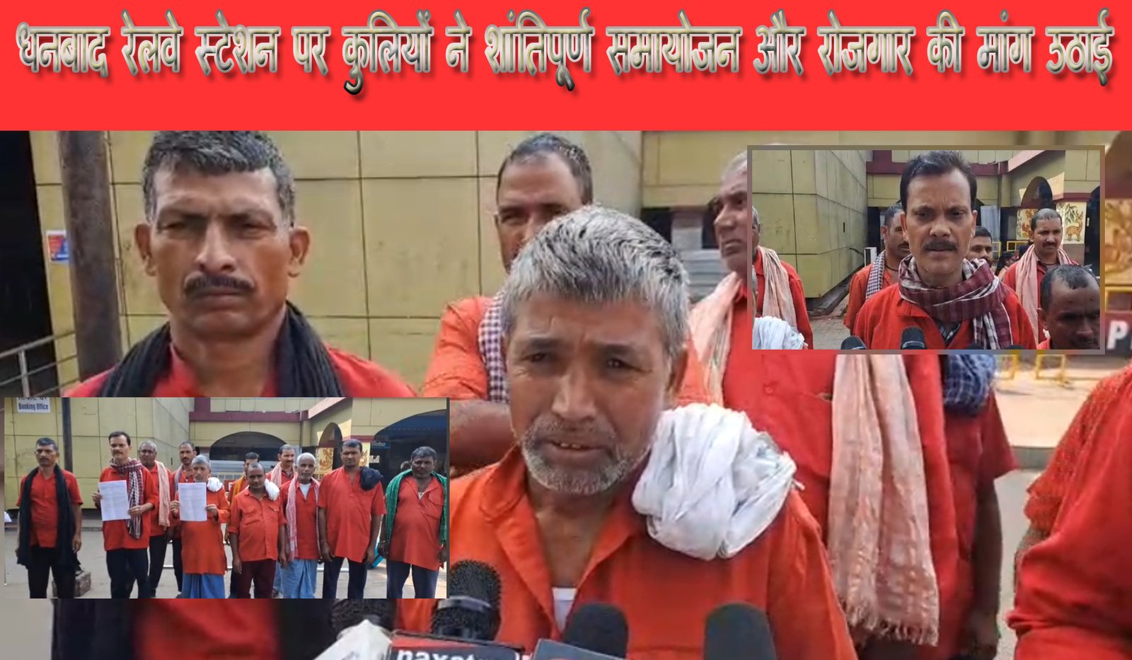 धनबाद रेलवे स्टेशन पर कुलियों ने शांतिपूर्ण समायोजन और रोजगार की मांग उठाई
