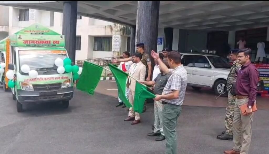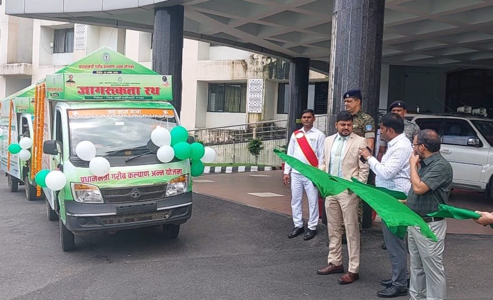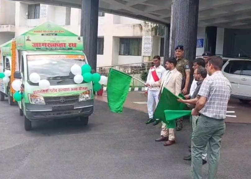 प्रधानमंत्री गरीब कल्याण अन्न योजना के तहत आमजन को सरकारी योजनाओं की जानकारी देने के उद्देश्य से खाद्य आपूर्ति विभाग के प्रचार रथ को समाहरणालय परिसर से सोमवार को उपायुक्त सह जिला दंडाधिकारी श्री आदित्य रंजन ने हरी झंडी दिखाकर रवाना किया।