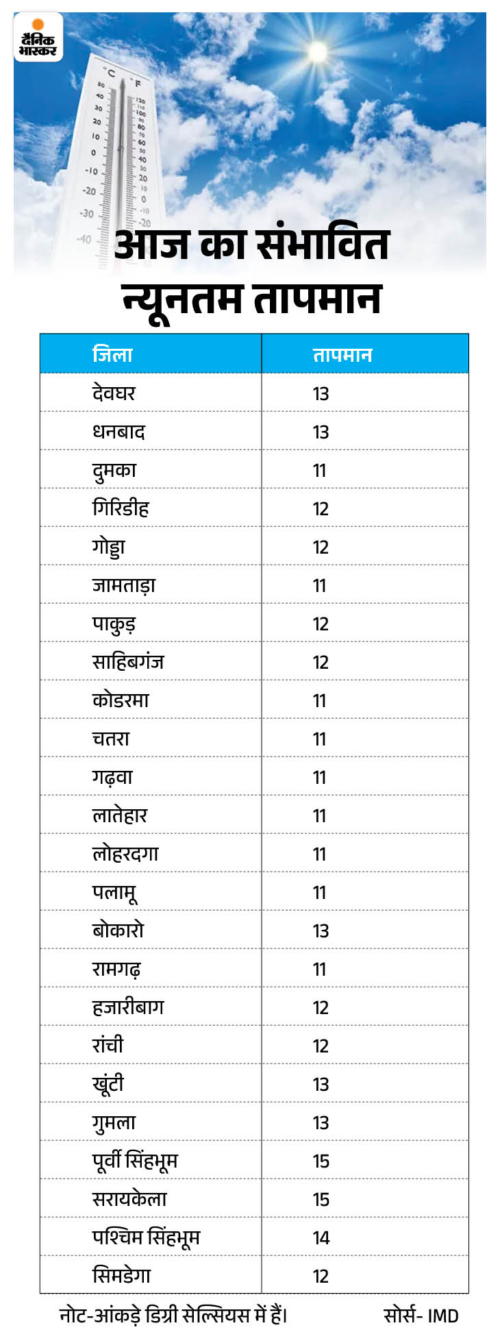 रांची का तापमान 13 डिग्री पर पहुंच गया