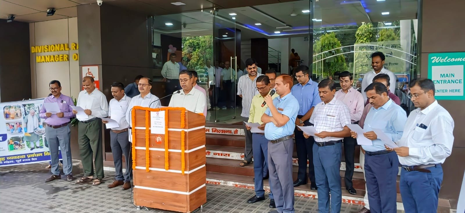 जिला : धनबाद , दिनांक : 17/09/2025, स्थान : धनबाद स्टेशन: आज दिनांक 17/09/2025 को, स्वच्छ भारत मिशन अभियान के अंतर्गत , भारतीय रेल द्वारा आयोजित “ स्वच्छता पखवाड़ा( दिनांक 17/09/2025 से दिनांक 02/10/2025 ) के प्रथम दिन, “स्वच्छता ही सेवा-2025” अभियान का शुभारम्भ धनबाद मंडल के “मंडल रेल प्रबंधक महोदय” के द्वारा किया गया l इस प्रक्रम में सर्वप्रथम, मंडल रेल प्रबंधक महोदय के नेतृत्व में, मंडल रेल कार्यालय में , पूर्वान्ह 10:00 बजे, मंडल रेल प्रबंधक महोदय, सभी शाखा पदाधिकारीगण, कर्मचारियों एवं स्काउट एण्ड गाइड के स्वयं सेवकों ने स्वच्छता शपथ ली | इसी क्रम में, अपरान्ह 04:00 बजे, धनबाद स्टेशन के पोर्टिको क्षेत्र, धनबाद(प्लेटफार्म संख्या-01) पर यात्रियों को स्वच्छता के प्रति जागरूक करने हेतु स्काउट एण्ड गाइड के स्वयं सेवकों द्वारा नुक्कड़ नाटक का भी आयोजन किया गया, जिसकी थीम ” स्वच्छता की भागेदारी” के तहत कचरे का निष्पादन एवं डस्ट्बिन का प्रयोग के लिए यात्रियों को जागरूक किया गया तथा स्वच्छता को अपने “स्वभाव” व “संस्कार” में सम्मिलित करने तथा “जिम्मेदारी” का निर्वहन करते हुए “भागीदारी” करने हेतु प्रेरित किया गयाl इसी अनुरूप, धनबाद मंडल के करीब 150 स्टेशनो, कोचिंग डिपो और रेलवे के अन्य परिसरों में भी वर्क शॉप और प्रशिक्षण के कार्यकर्मों का आयोजन किया गया, जिसके तहत स्वच्छता शपथ के अलावा यात्रियों को स्वच्छता के प्रति जागरुक किया गया, साथ ही साथ, वर्क शॉप और प्रशिक्षण के माध्यम से ऑन बोर्ड स्टाफ को स्वच्छता ही सेवा के ध्येय को समझाया गया ताकि वे ट्रेन में सवार यात्रियों को भी जागरूक करें और ट्रेन की स्वच्छता को बनाए रखने में भारतीय रेल के इस अभियान में अपना योगदान दे सकें