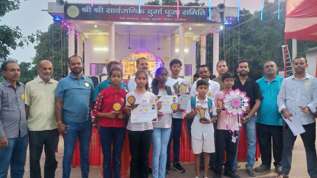 सभी विजेता प्रतिभागियों को पूजा समिति की ओर से प्रमाण पत्र एवं मेमेंटो प्रदान कर सम्मानित किया गया।
