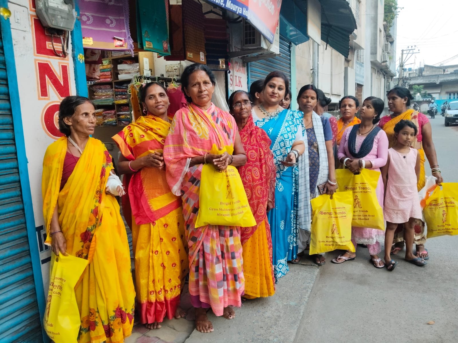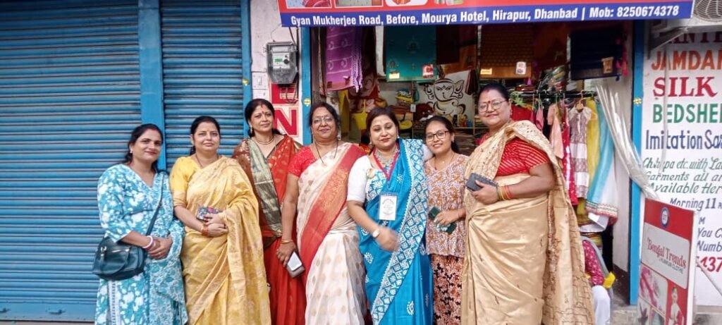 धनबाद। महासप्तमी के शुभ अवसर पर सखियमम फाउंडेशन की ओर से बंगाली ट्रेंड्स, ज्ञान मुखर्जी रोड में जरूरतमंद महिलाओं के बीच साड़ी वितरण कार्यक्रम का आयोजन किया गया।