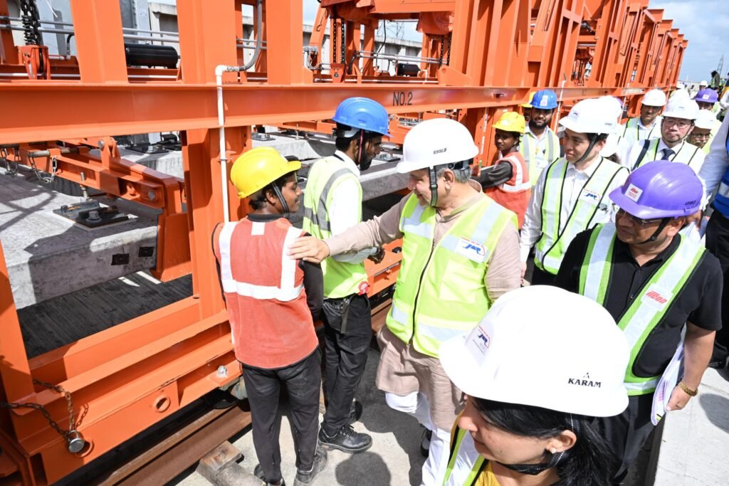 दोनों मंत्रियों ने परियोजना के महत्वपूर्ण हिस्सों की समीक्षा की, जिनमें ट्रैक स्लैब लेयिंग कार और ट्रैक स्लैब एडजस्टमेंट फैसिलिटी शामिल थे।