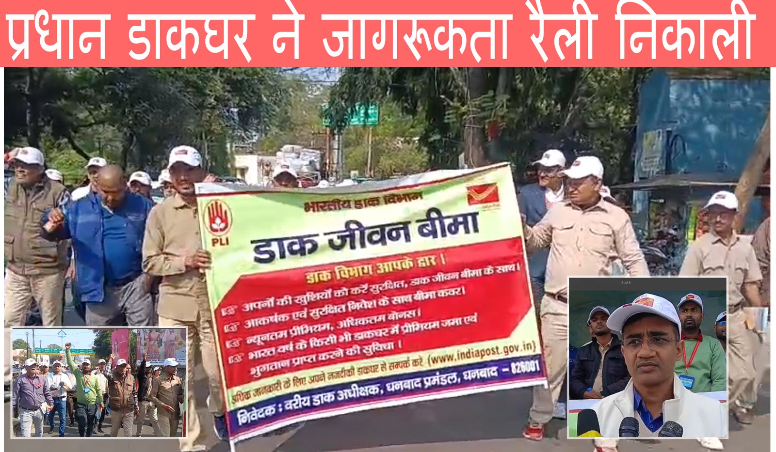 धनबाद:- धनबाद प्रधान डाकघर की ओर से आज आमलोगों को विभिन्न केंद्रीकृत योजनाओं और डाक विभाग की सेवाओं की जानकारी देने के उद्देश्य से एक जागरूकता रैली निकाली गई। रैली में प्रधान डाकघर के सभी अधिकारी-कर्मचारी शामिल हुए। सुबह से ही कर्मचारियों का जमावड़ा प्रधान डाकघर परिसर में देखा गया, जहां सभी ने हाथों में प्लेकार्ड और बैनर लेकर लोगों को जागरूक करने का संदेश दिया।
