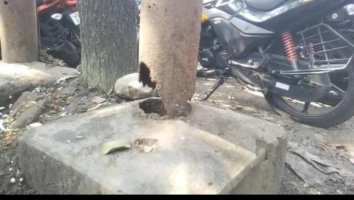 आसनसोल (ASANSOL): वार्ड 49 के गिरजामोड़ स्थित हॉकर मार्केट पर इन दिनों एक बड़ा खतरा मँडरा रहा है। मार्केट के कारोबारियों के मुताबिक, उनकी दुकानों के ठीक सामने लगा 11 हजार वोल्ट बिजली सप्लाई वाला खंभा कब गिर पड़े—किसी को नहीं पता। खंभे का निचला हिस्सा पूरी तरह जंग खा चुका है और किसी तरह टिका हुआ दिखाई देता है। दुकानदारों का कहना है कि तेज हवा या आंधी आते ही यह किसी बड़ी दुर्घटना का सबब बन सकता है।