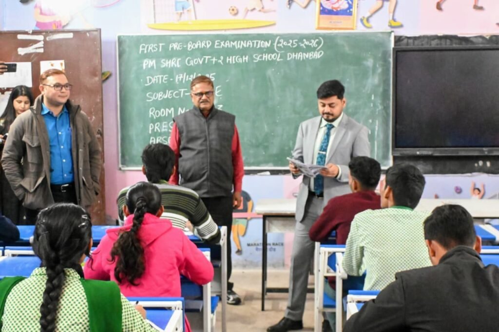बोर्ड परीक्षाओं में धनबाद जिले के छात्रों का बेहतरीन प्रदर्शन सुनिश्चित करने तथा छात्रों को बोर्ड परीक्षा के माहौल से परिचित कराने के उद्देश्य से उपायुक्त सह जिला दंडाधिकारी श्री आदित्य रंजन ने मैट्रिक एवं इंटरमीडिएट परीक्षाओं के लिए जिले के 141 विद्यालयों में मैट्रिक एवं 36 हाई स्कूल में इंटरमीडिएट प्री बोर्ड परीक्षा आयोजित करने का निर्देश दिया था। प्री बोर्ड परीक्षा का आयोजन आज, 17 दिसंबर 2025, से शुरू हआ।