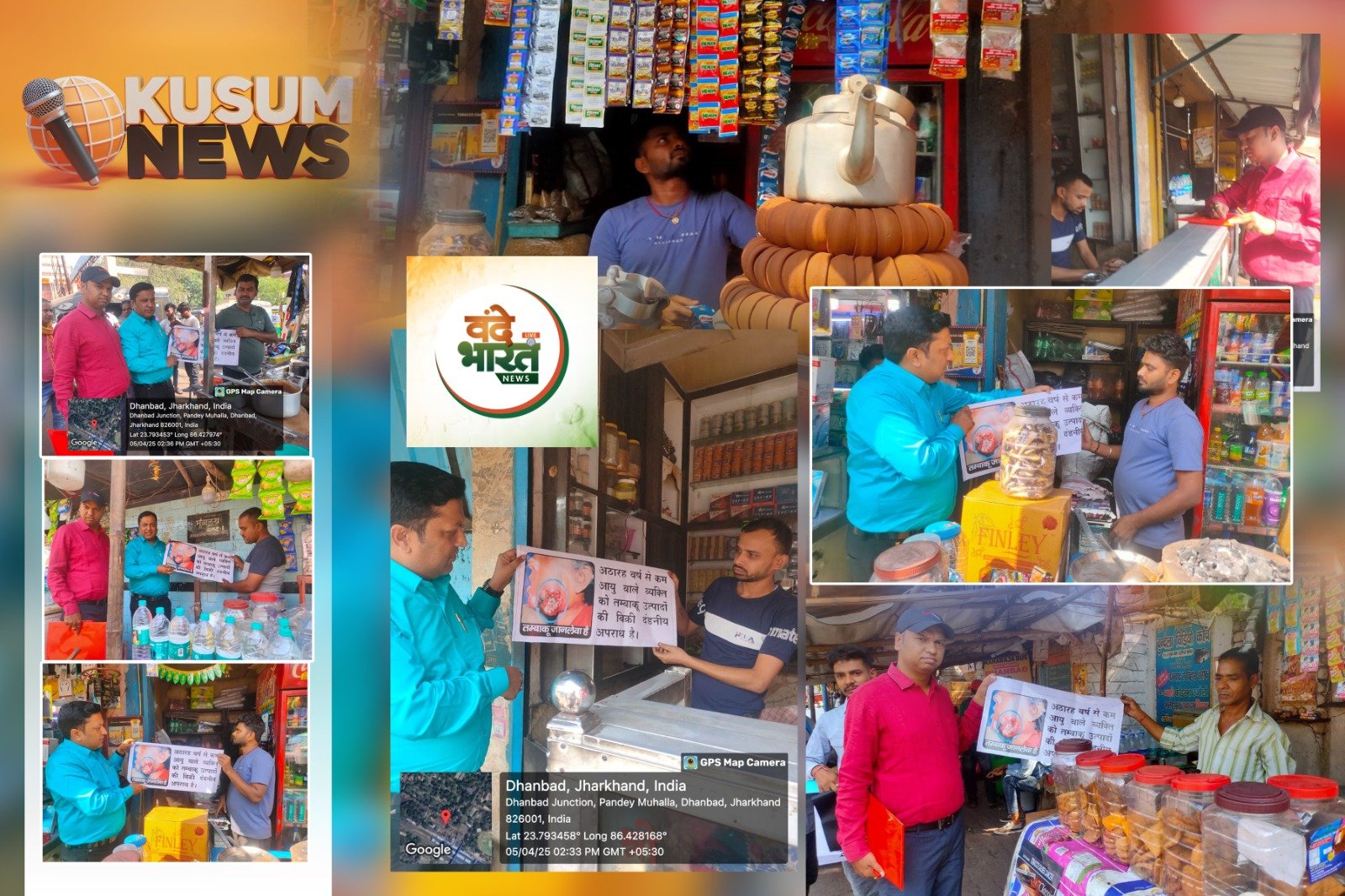 धनबाद, 05 अप्रैल 2025:उपायुक्त धनबाद के निर्देश पर फूड सेफ्टी ऑफिसर राजा कुमार की अगुवाई में जिला तंबाकू नियंत्रण सेल के साथ मिलकर स्टेशन रोड धनबाद में तंबाकू नियंत्रण अभियान चलाया गया। इस अभियान का उद्देश्य प्रतिबंधित निकोटीन युक्त पान मसाला की बिक्री पर रोक लगाना और कोटपा 2003 (COTPA 2003) के प्रावधानों को प्रभावी रूप से लागू कराना था।