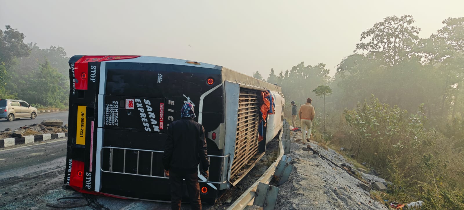 अब तक मिली जानकारी के अनुसार सारण के दिघवारा के रहने वाले कामाख्या सिंह अपनी बेटी को लेकर शादी के लिए रांची जा रहे थे। शादी आज ही होनी है। बस में 60 लोग सवार थे। बताया जा रहा है कि बस चरही के मर्डरर टर्न के पास खतरनाक हो गया और डिवाइडर से बस का रूप ले लिया। वहीं टकराने के बाद बस पलट गई।