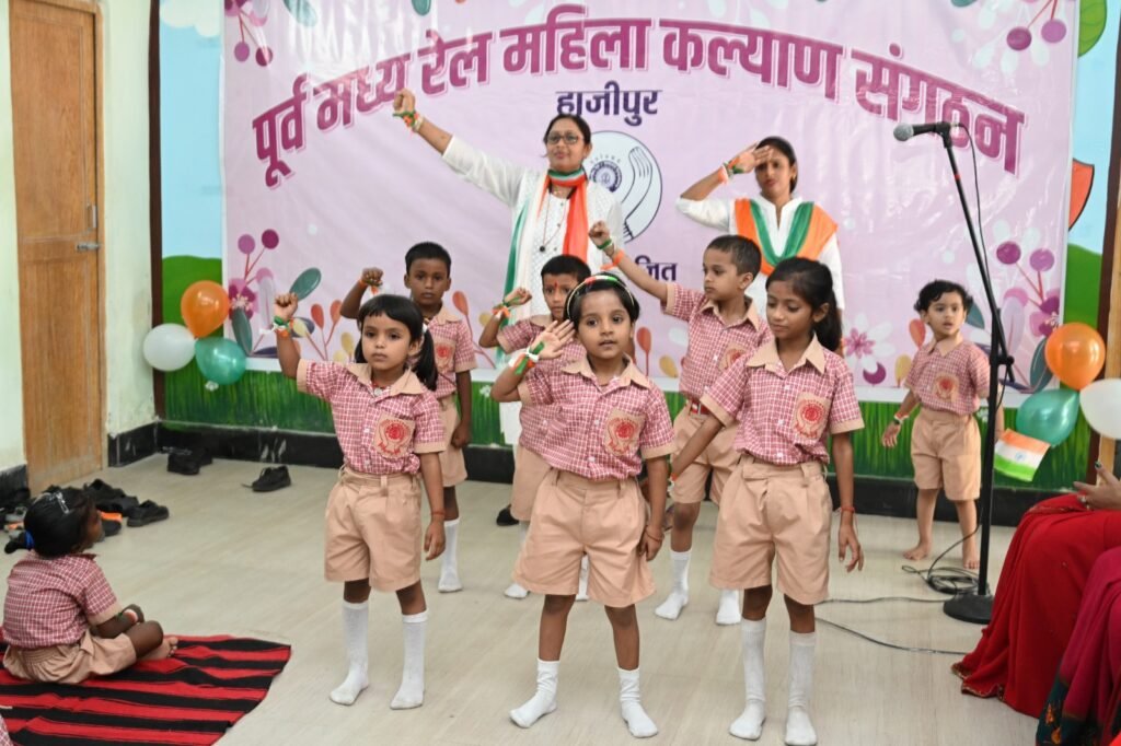 आज दिनांक 14.08.2025 को पूर्व मध्य रेल महिला कल्याण संगठन, हाजीपुर की अध्यक्षा श्रीमती सुनीता सिंह के दिशा निर्देशन में रेलवे कॉलोनी, कोनहाराघाट, हाजीपुर स्थित Little Angels Kindergarten and Play School के प्रागंण में बच्चों द्वारा स्वतंत्रता दिवस के पूर्व अवसर पर रंगारंग सांस्कृतिक कार्यक्रम प्रस्तुत किया गया । इस अवसर पर ‘परिधान प्रशिक्षण सिलाई केन्द्र‘ के प्रशिक्षु विद्यार्थियों ने भी सांस्कृतिक कार्यक्रम में उत्साहपूर्वक भाग लिया ।
