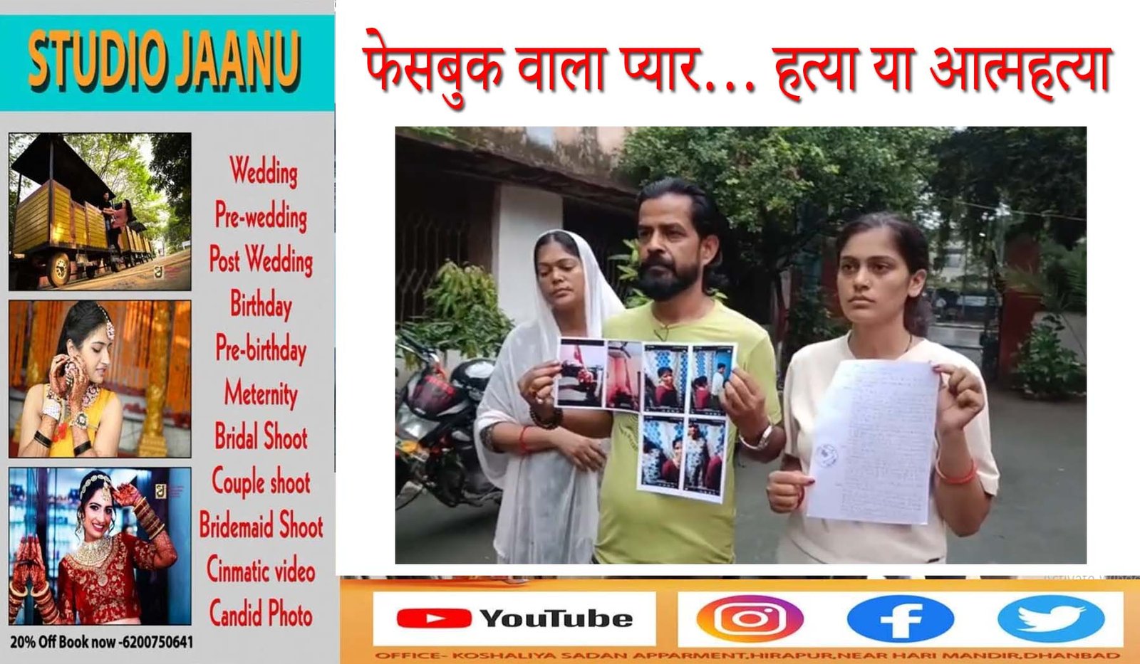 फेसबुक के जरिए शुरू हुआ प्यार शादी तक पहुंचा, लेकिन तीन साल बाद यह रिश्ता एक दर्दनाक मोड़ पर आकर खत्म हो गया। 14 सितंबर को धनबाद में युवक की संदिग्ध हालात में मौत हो गई। युवक पंखे से लटका मिला, जिसे पुलिस ने प्रारंभिक तौर पर आत्महत्या का मामला माना, लेकिन मृतक के परिजनों ने इसे साजिशन हत्या करार दिया है।