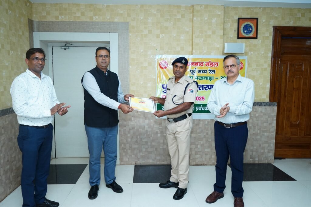 विदित हो कि धनबाद मंडल में दिनांक 15.09.25 से 26.09.25 तक राजभाषा पखवाड़ा मनाया गया जिसके अंतर्गत विभिन्न राजभाषा प्रतियोगिताएँ जैसे- अधिकारी राजभाषा क्विज प्रतियोगिता, कर्मचारियों के लिए हिंदी निबंध प्रतियोगिता, हिंदी टिप्पण एवं प्रारुप लेखन प्रतियोगिता, हिंदी वाक् प्रतियोगिता तथा राजभाषा क्विज प्रतियोगिता का आयोजन किया गया । इन प्रतियोगिताओं में शामिल प्रतिभागियों में से कुल 30 विजेता अधिकारियों व कर्मचारियों को प्रशस्ति पत्र प्रदान कर सम्मानित किया गया । इसके अतिरिक्त वर्ष 2024-25 के दौरान कार्यालयीन प्रयोग में हिंदी में प्रशंसनीय कार्य करने वाले कुल 11 अधिकारियों तथा 30 कर्मचारियों को भी मंडल रेल प्रबंधक महोदय द्वारा पुरस्कृत कर सम्मानित किया गया ।