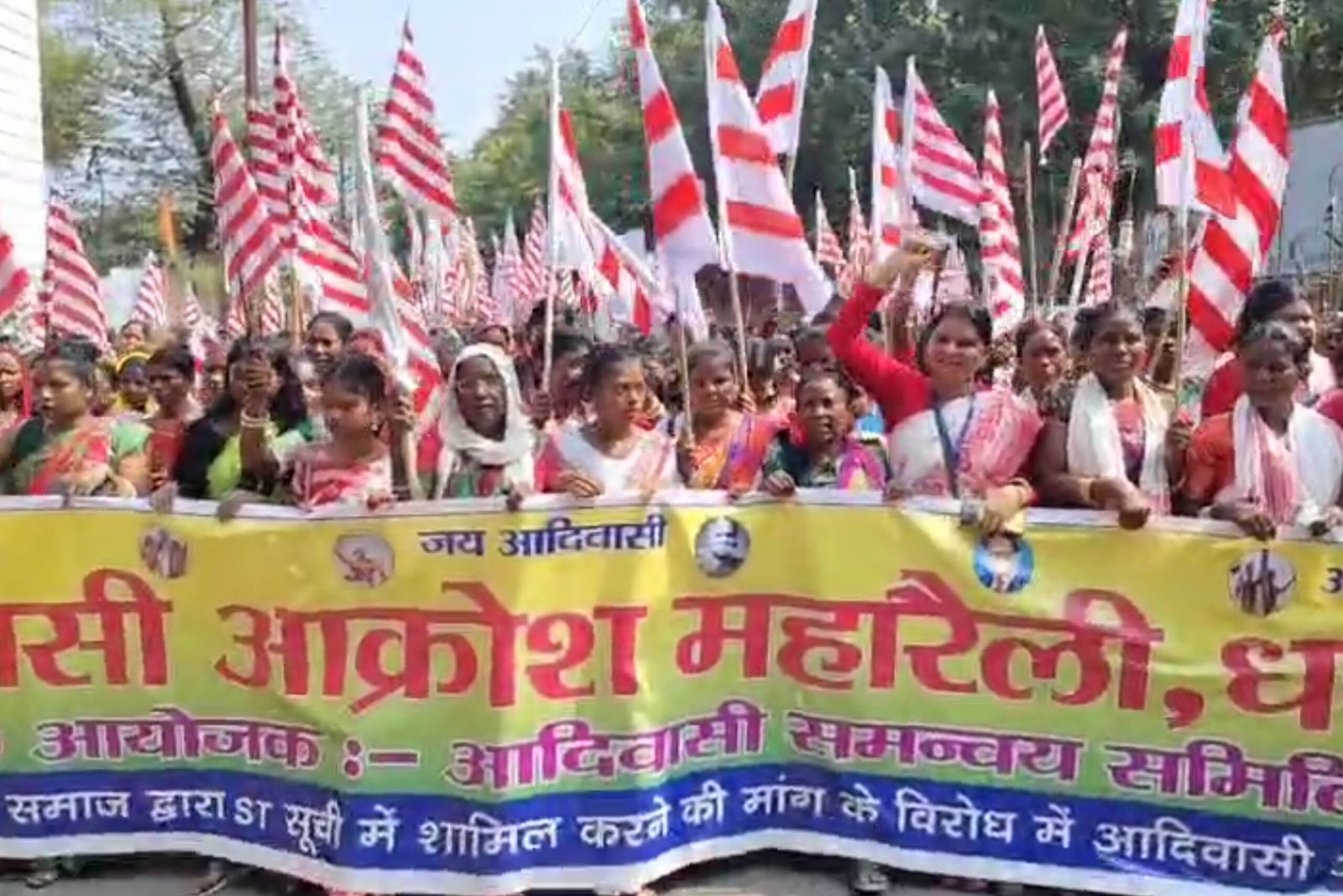 धनबाद जिले से हजारों की संख्या में आदिवासी समुदाय के लोग गोल्फ ग्राउंड में एकत्रित होकर के उपायुक्त कार्यालय तक रैली निकाली गई जिसमें सभी आयु के पुरुष और महिला शामिल हुए बताते चले की कुड़मी जाति के लोग आदिवासी जाति में शामिल होने का ऐलान कर रहे हैं जिसका विरोध आदिवासी समुदाय के लोग कर रहे हैं इस रैली में आदिवासी समुदाय के लोग पारंपरिक वाद्य यंत्र पारंपरिक हथियार तीर्थ धनुष लेकर के नारेबाजी करते रैली में जा रहे हैं मुख्य रूप से तीर धनुष उनके हाथों में साथ में था नारेबाजी में कुड़मी आदिवासी जाति में नहीं चलेगा