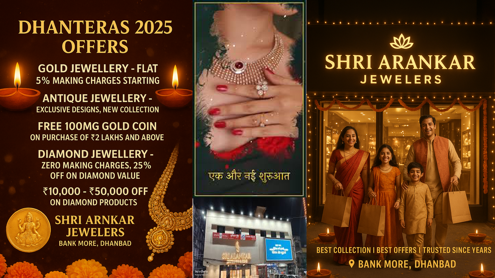 SRI ALANKAR JEWELLERS AND SONS, बैंक मोड़, धनबाद धनतेरस 2025 के शानदार ऑफर्स इस धनतेरस पर ले आइए खुशियों का सोना! अबकी बार सबसे दमदार ऑफर सिर्फ आपके अपनों के लिए: गोल्ड ज्वेलरी – सिर्फ 5% फ्लैट मेकिंग चार्जेस से शुरू एंटीक ज्वेलरी – एक्सक्लूसिव डिजाइन, नया कलेक्शन ₹2 लाख से ऊपर खरीदारी पर 100mg फ्री गोल्ड कॉइन डायमंड ज्वेलरी – जीरो मेकिंग चार्जेज, डायमंड वैल्यू पर 25% फ्लैट ऑफ मार्केट से ₹10,000-₹50,000 सस्ते डायमंड प्रोडक्ट्स सिल्वर काउंटर और डायमंड काउंटर पर स्पेशलिस्ट गाइडेंस तो देर किस बात की? इस धनतेरस, SRI ALANKAR JEWELLERS AND SONS, बैंक मोड़, धनबाद ज़रूर आईए! औरों से पहले, बेस्ट कलेक्शन और बेस्ट डील्स पाइ