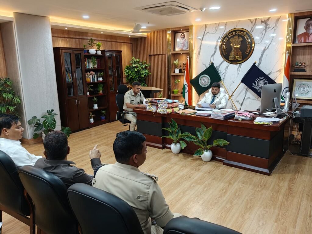 पुटकी अंचल क्षेत्र अंतर्गत पेटिया बस्ती में जुडको द्वारा सीवरेज ट्रीटमेट प्लांट निर्माण कार्य को लेकर उपायुक्त सह जिला दंडाधिकारी श्री आदित्य रंजन की अध्यक्षता में समाहरणालय स्थित कार्यालय कक्ष में बैठक का आयोजन किया गया।
