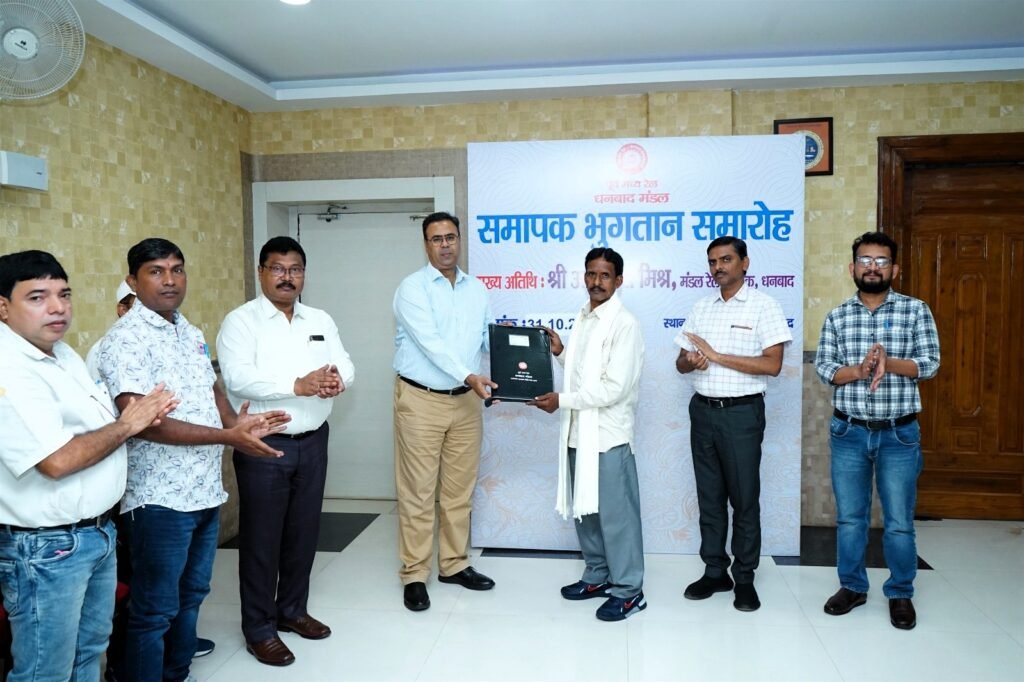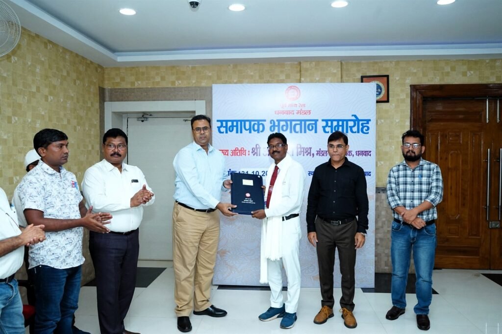 दिनांक 31.10.25 को धनबाद मंडल में अक्टूबर माह 2025 में सेवानिवृत होने वाले कर्मचारियों के लिए समापक भुगतान एवं सम्मान समारोह का आयोजन किया गया। अक्टूबर माह 2025 में कुल 28 कर्मचारी सेवानिवृत्त हुए, जिनके सभी समापक भुगतान कर दिए गए ।