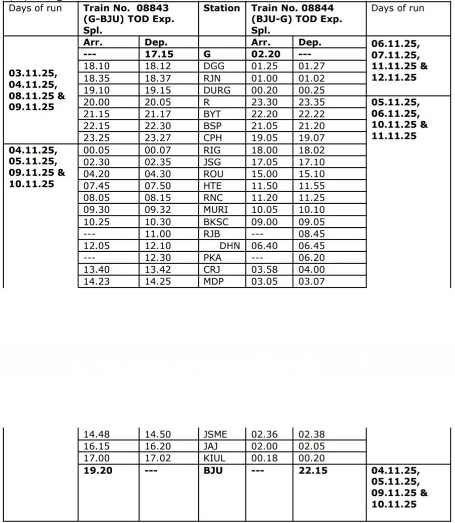 उत्तरी रेलवे के लखनऊ मंडल में सुलतानपुर-जफराबाद रेलखंड के मध्य ट्रैफिक कम पावर ब्लॉक के मद्देनजर दिनांक 07.11.25 को धनबाद से खुलने वाली गाड़ी संख्या 03311 धनबाद-चंडीगढ़ स्पेशल के परिचालन के मार्ग में परिवर्तन किया जायेगा | यह गाड़ी उपरोक्त तिथि पर वाराणसी-माँ बेल्हा देवी धाम प्रतापगढ़-लखनऊ के रास्ते चंडीगढ़ को जाएगी |