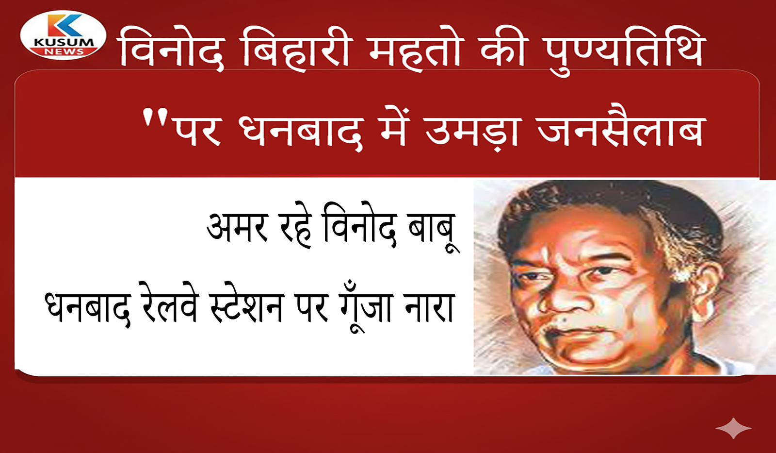 धनबाद के स्टेशन परिसर में झारखंड के पुरोधा विनोद बिहारी महतो की पुण्यतिथि मनाई गई। जेएमएम के टुंडी विधायक मथुरा महतो, जिला अध्यक्ष लखीसोरेन और नेत्री नीलम मिश्रा ने उनकी आदमकद प्रतिमा पर माल्यार्पण किया।