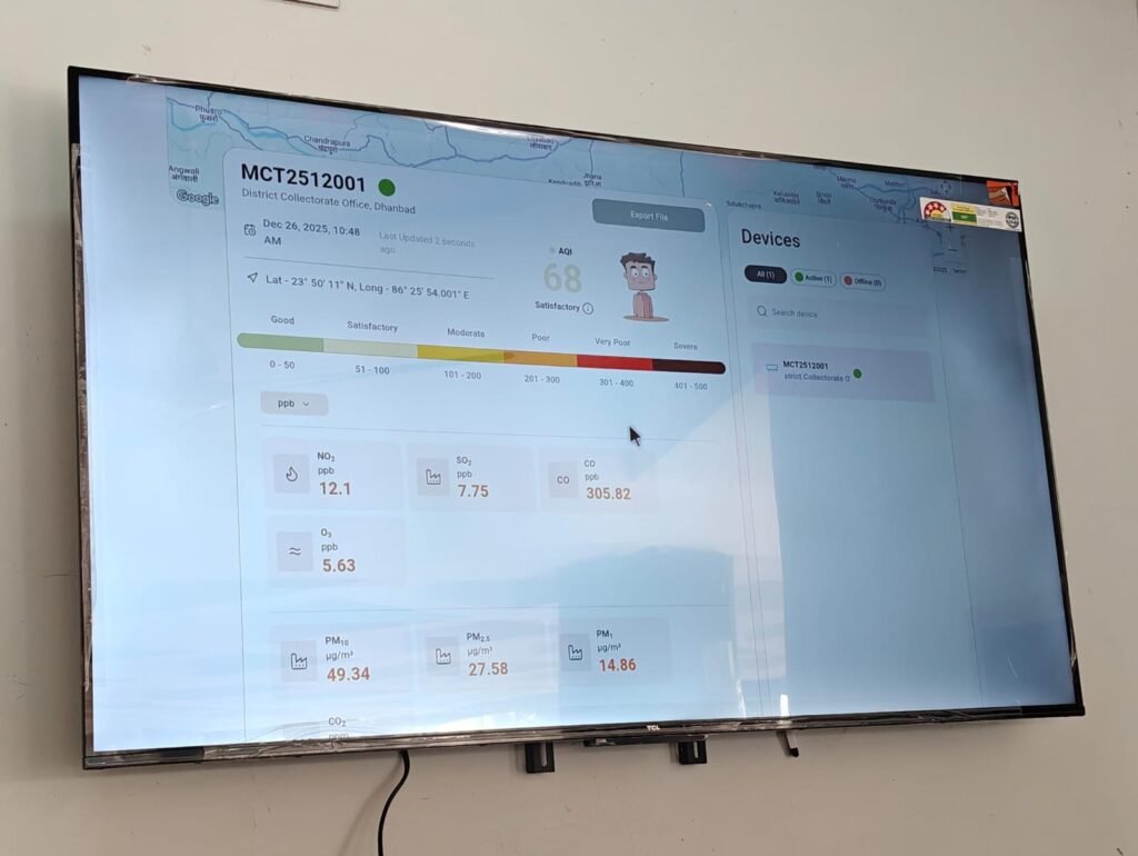 उपायुक्त सह जिला दंडाधिकारी श्री आदित्य रंजन के निर्देशानुसार धनबाद में प्रदूषण के प्रति जागरूकता बढ़ाने के लिए समाहरणालय परिसर में एयर प्रवाह (Air Pravah) डिवाइस लगाया गया है।