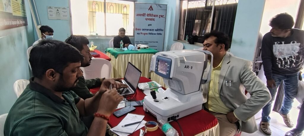 राष्ट्रीय सड़क सुरक्षा माह के अंतर्गत धनबाद के असर्फी चैरिटेबल ट्रस्ट के सहयोग से जिला परिवहन कार्यालय परिसर में आज निशुल्क कैंसर जांच, बीपी, शुगर एवं नेत्र जांच शिविर का आयोजन किया गया। इस शिविर में कुल 82 लोगों ने स्वास्थ्य सेवाओं का लाभ लिया।
