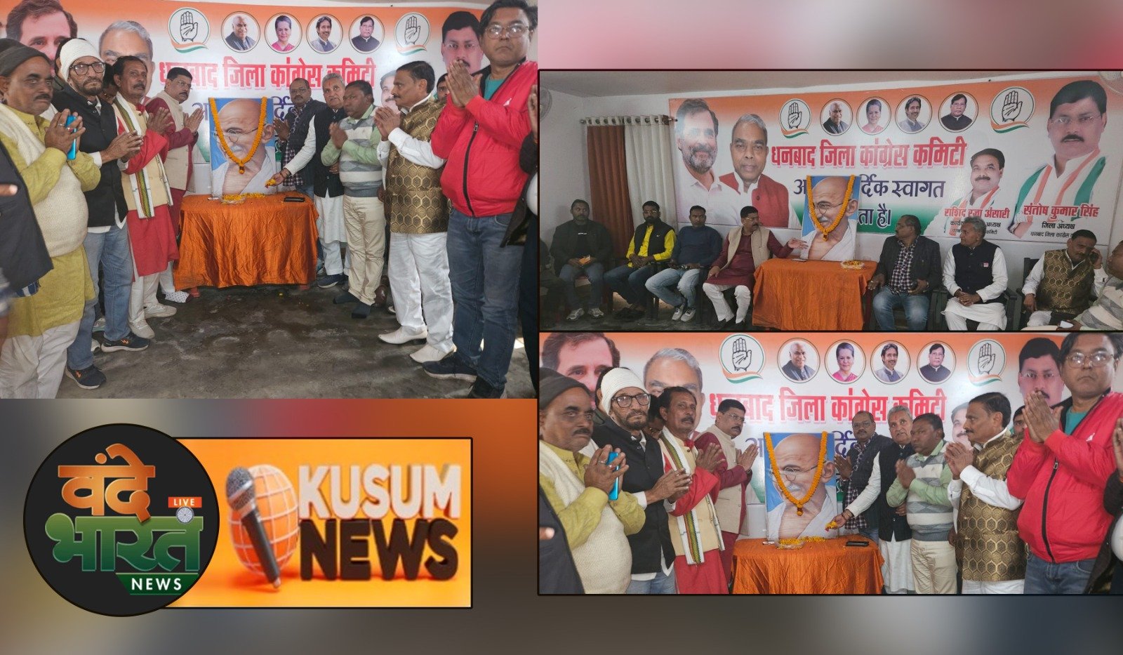 धनबाद, 30 जनवरी 2025: राष्ट्रपिता महात्मा गांधी की पुण्यतिथि के अवसर पर धनबाद जिला कांग्रेस कमेटी ने जिला कांग्रेस मुख्यालय, हाउसिंग कॉलोनी में श्रद्धांजलि सभा का आयोजन किया। कार्यक्रम की अध्यक्षता जिला कांग्रेस कमेटी के अध्यक्ष संतोष कुमार सिंह ने की।कार्यक्रम की शुरुआत कांग्रेस कार्यकर्ताओं द्वारा महात्मा गांधी के तेल चित्र पर पुष्पांजलि अर्पित कर एवं राम धुन के गायन से हुई। इसके बाद गांधी विचार गोष्ठी का आयोजन किया गया, जिसमें कांग्रेस नेताओं ने बापू के आदर्शों और उनके योगदान को याद किया।