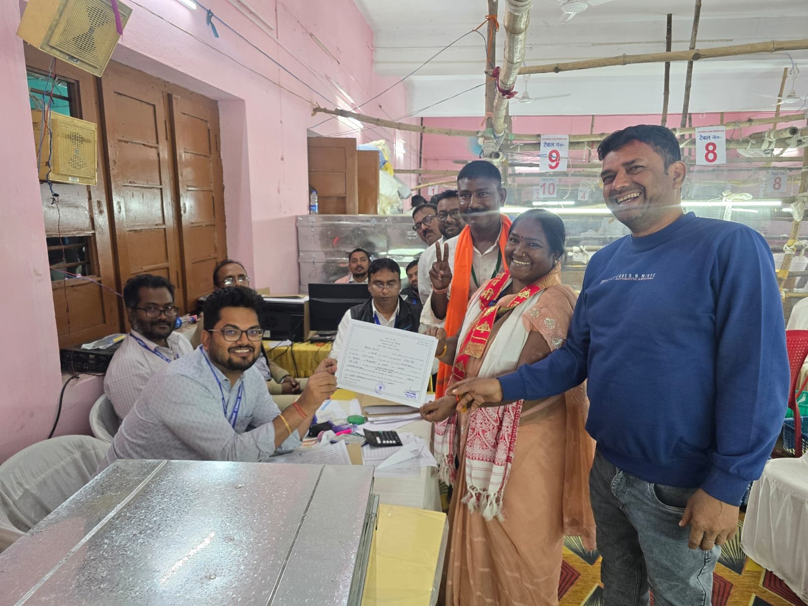 उन्हें निर्वाची पदाधिकारी श्री विकास आनंद ने विजय प्रमाण पत्र प्रदान किया।