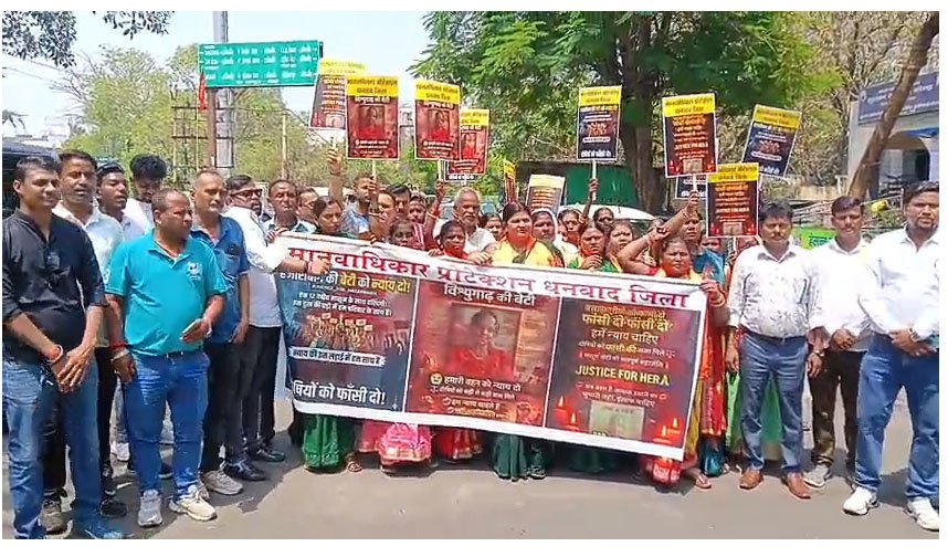 धनबाद। हजारीबाग जिले के विष्णुगंज थाना क्षेत्र में रामनवमी की शाम 12 वर्षीय सुमन कुमारी के साथ दुष्कर्म और निर्मम हत्या के विरोध में बुधवार को धनबाद में मानव अधिकार संगठन ने जोरदार प्रदर्शन किया। संगठन के सदस्यों ने बैनर-पोस्टर के साथ इनकम टैक्स ऑफिस क्षेत्र से पैदल मार्च निकाला, जो रणधीर वर्मा चौक स्थित धरना स्थल तक पहुंचा। इस दौरान दोषियों को फांसी की सजा देने की मांग उठाई गई।