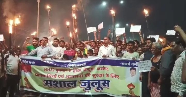 केंदुआडीह (धनबाद): पूर्व निर्धारित कार्यक्रम के तहत भू-धंसान और गैस रिसाव से प्रभावित स्थानीय लोगों ने मंगलवार शाम एक बड़ा मशाल जुलूस निकालकर अपना विरोध दर्ज कराया। यह जुलूस केंदुआ पांच नंबर से शुरू होकर गंशाडीह, पुराने थाना क्षेत्र, केंदुआ बाजार होते हुए करकेन्द मोड़ तक गया, जहां इसका समापन हुआ।