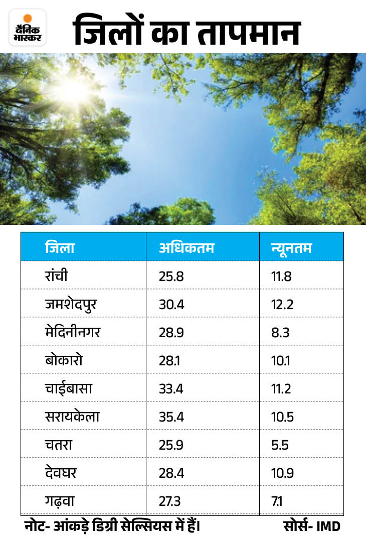 मौसम विभाग के रिपोर्ट के मुताबिक गोड्डा, गुमला, कोडरमा, लोहरदगा, लातेहार व हजारीबाग में सुबह-शाम ठंड का असर देखने को मिलेगा। अफ़रिश्र आज r ब rurcun kanta चलेगी r औ r शुष शुष rab शुष