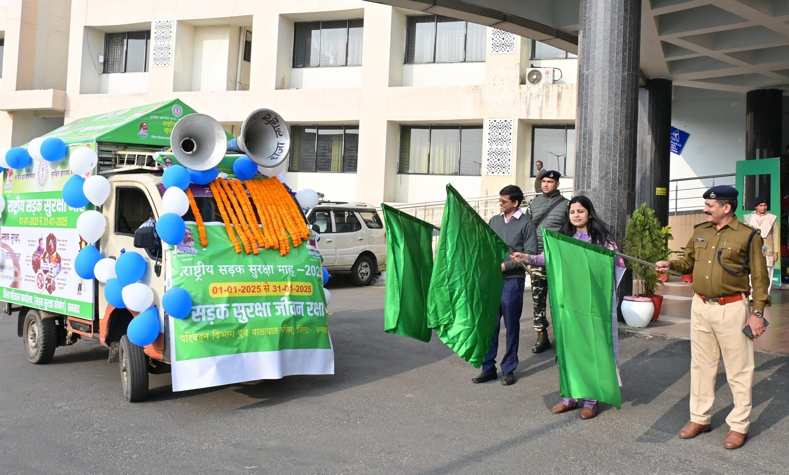 राष्ट्रीय सड़क सुरक्षा माह के तहत धनबाद में गांधीगिरी के जरिए लोगों को किया गया जागरूक, ट्रैफिक नियमों के पालन पर दिया जोर